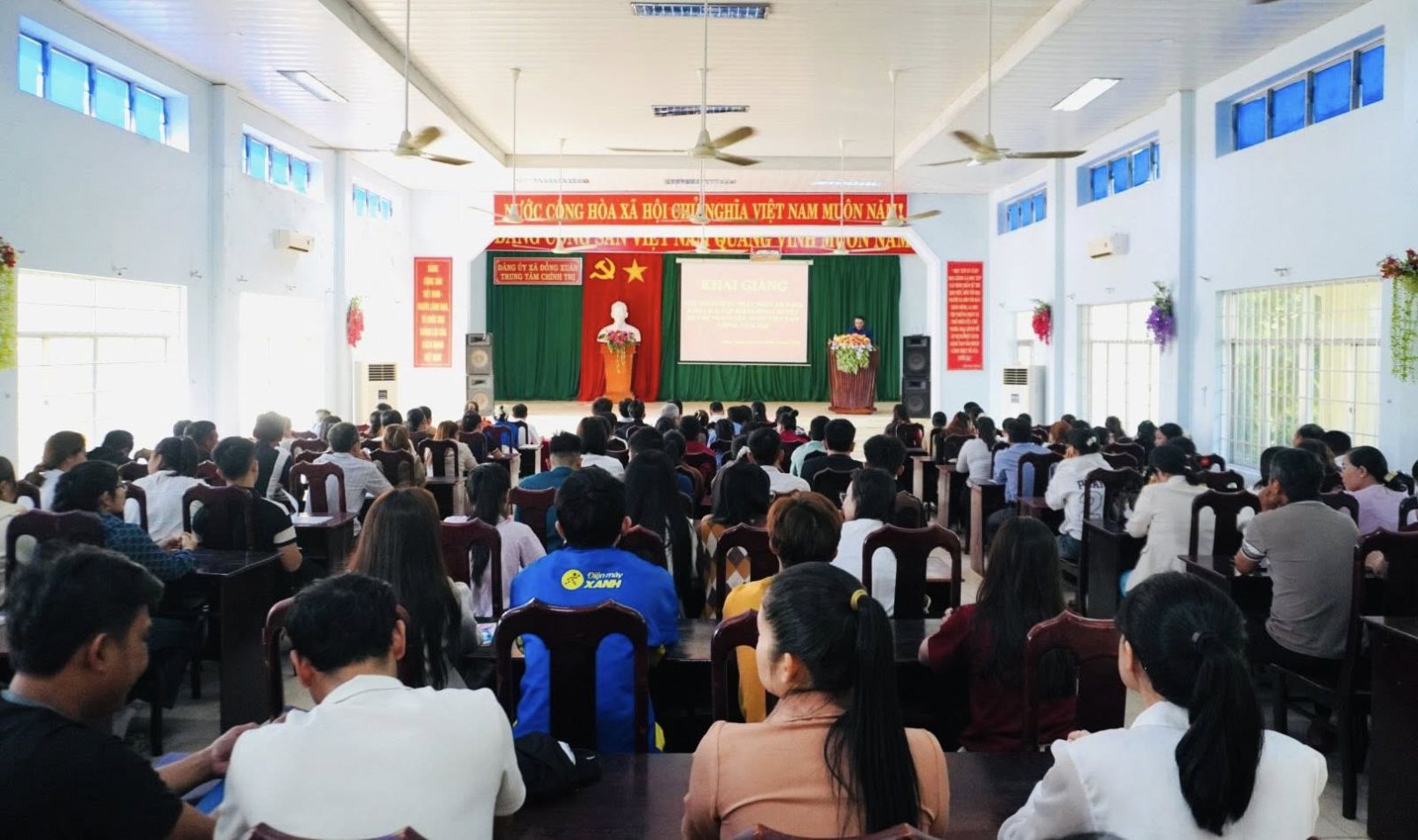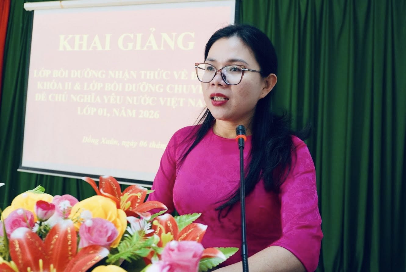 Phát biểu chỉ đạo tại lễ khai giảng, đồng chí Lê Thị Như Quỳnh – Phó Bí thư Thường trực Đảng ủy xã Đồng Xuân ghi nhận và đánh giá cao sự chủ động của Trung tâm Chính trị trong việc tổ chức lớp học theo hình thức ghép, phù hợp với điều kiện thực tiễn, bảo đảm chất lượng đào tạo, bồi dưỡng. Đồng chí nhấn mạnh, lớp bồi dưỡng nhận thức về Đảng và chuyên đề “Chủ nghĩa yêu nước Việt Nam” có ý nghĩa quan trọng trong việc trang bị nền tảng lý luận, nâng cao nhận thức chính trị, tư tưởng cho quần chúng ưu tú. Đồng chí đề nghị các học viên nêu cao tinh thần trách nhiệm, chấp hành nghiêm nội quy lớp học, tích cực nghiên cứu, trao đổi, vận dụng kiến thức vào thực tiễn công tác, rèn luyện, phấn đấu sớm được đứng vào hàng ngũ của Đảng; đồng thời yêu cầu Trung tâm Chính trị tiếp tục nâng cao chất lượng giảng dạy, gắn lý luận với thực tiễn, góp phần xây dựng đội ngũ đảng viên đáp ứng yêu cầu nhiệm vụ trong tình hình mới.