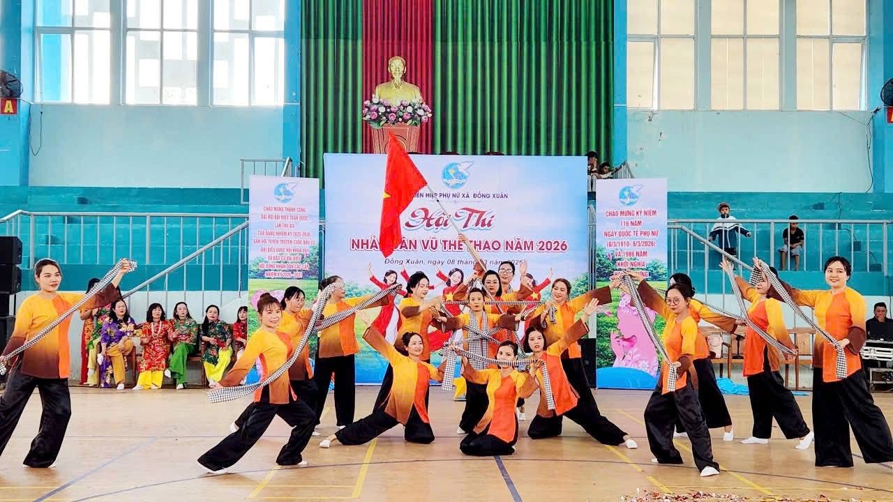 Thiết thực chào mừng kỷ niệm 116 năm Ngày Quốc tế Phụ nữ (08/3/1910 – 08/3/2026), 1986 năm Khởi nghĩa Hai Bà Trưng; chào mừng thành công Đại hội Đảng bộ các cấp tiến tới Đại hội đại biểu toàn quốc của Đảng nhiệm kỳ 2025 – 2030, gắn với tuyên truyền cuộc bầu cử đại biểu Quốc hội khóa XVI và đại biểu HĐND các cấp nhiệm kỳ 2026 – 2031, sáng 8/3, tại Nhà thi đấu đa năng xã Đồng Xuân, Hội Liên hiệp Phụ nữ xã Đồng Xuân tổ chức Hội thi nhảy dân vũ thể thao năm 2026.