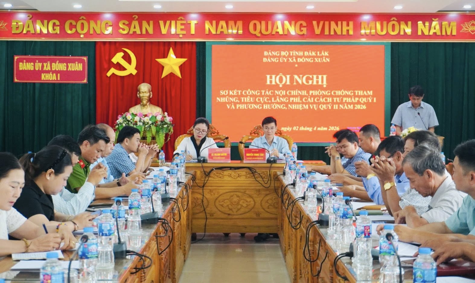 Sáng ngày 02/4, Đảng ủy xã Đồng Xuân tổ chức Hội nghị sơ kết công tác nội chính, phòng chống tham nhũng, lãng phí và cải cách tư pháp quý I/2026; đồng thời đề ra phương hướng, nhiệm vụ trọng tâm quý II. Các đồng chí: Nguyễn Trung Tâm – Bí thư đảng ủy, Chủ tịch HĐND xã và Lê Thị Như Quỳnh – Phó bí thư thường trực Đảng ủy, Tổ trưởng tổ công tác nội chính Đảng đồng chủ trì hội nghị.