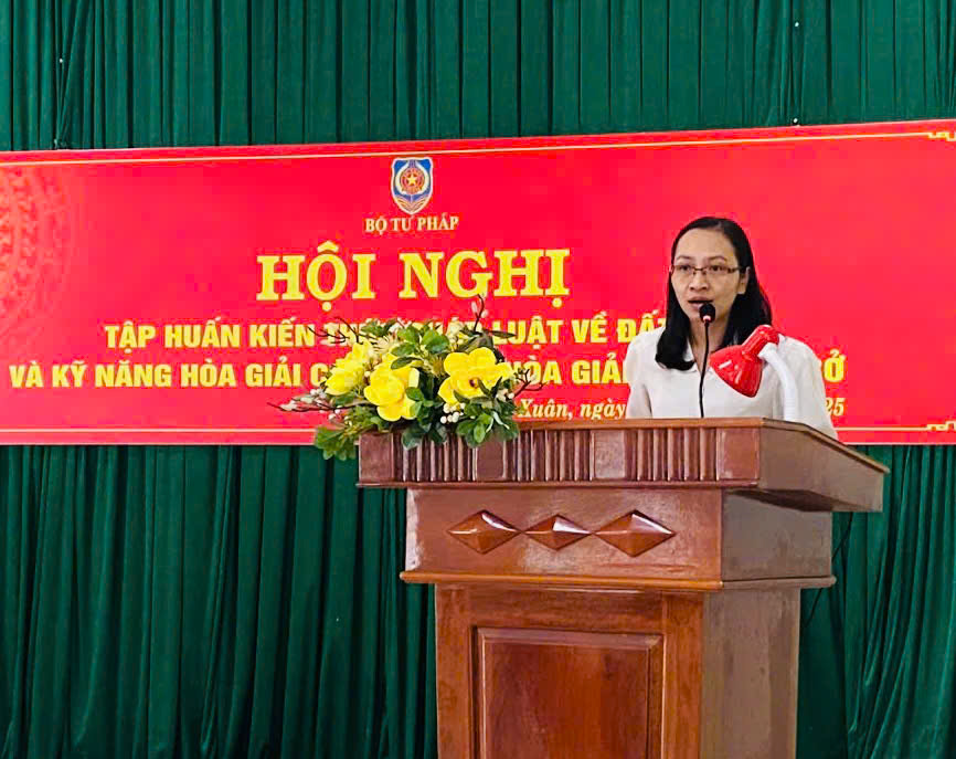 Sáng ngày 13/11/2025, tại Hội trường Ủy ban nhân dân xã Đồng Xuân, Bộ Tư pháp phối hợp với UBND xã Đồng Xuân tổ chức Hội nghị tập huấn nâng cao kiến thức pháp luật về đất đai và kỹ năng hòa giải ở cơ sở cho đội ngũ hòa giải viên trên địa bàn.