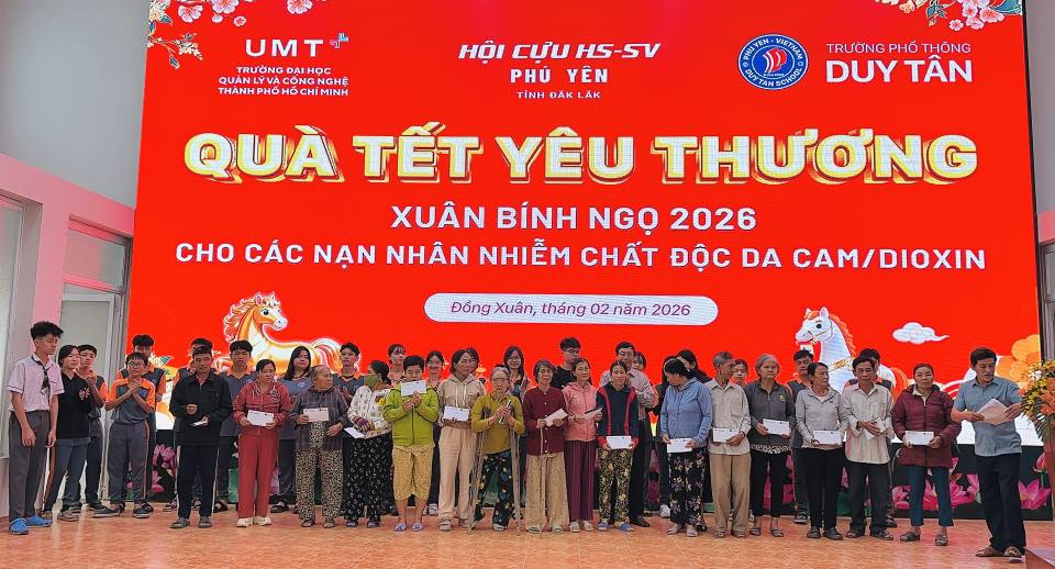 Sáng ngày 06/02/2026, tại Hội trường Đảng ủy xã Đồng Xuân, Hội Cựu học sinh – sinh viên Phú Yên tỉnh Đắk Lắk phối hợp với cấp ủy, chính quyền và Ủy ban MTTQ Việt Nam các xã Đồng Xuân, Phú Mỡ, Xuân Phước tổ chức Chương trình trao tặng “Quà Tết Yêu thương” Xuân Bình Ngọ 2026 cho các gia đình nạn nhân chất độc da cam/dioxin trên địa bàn.
